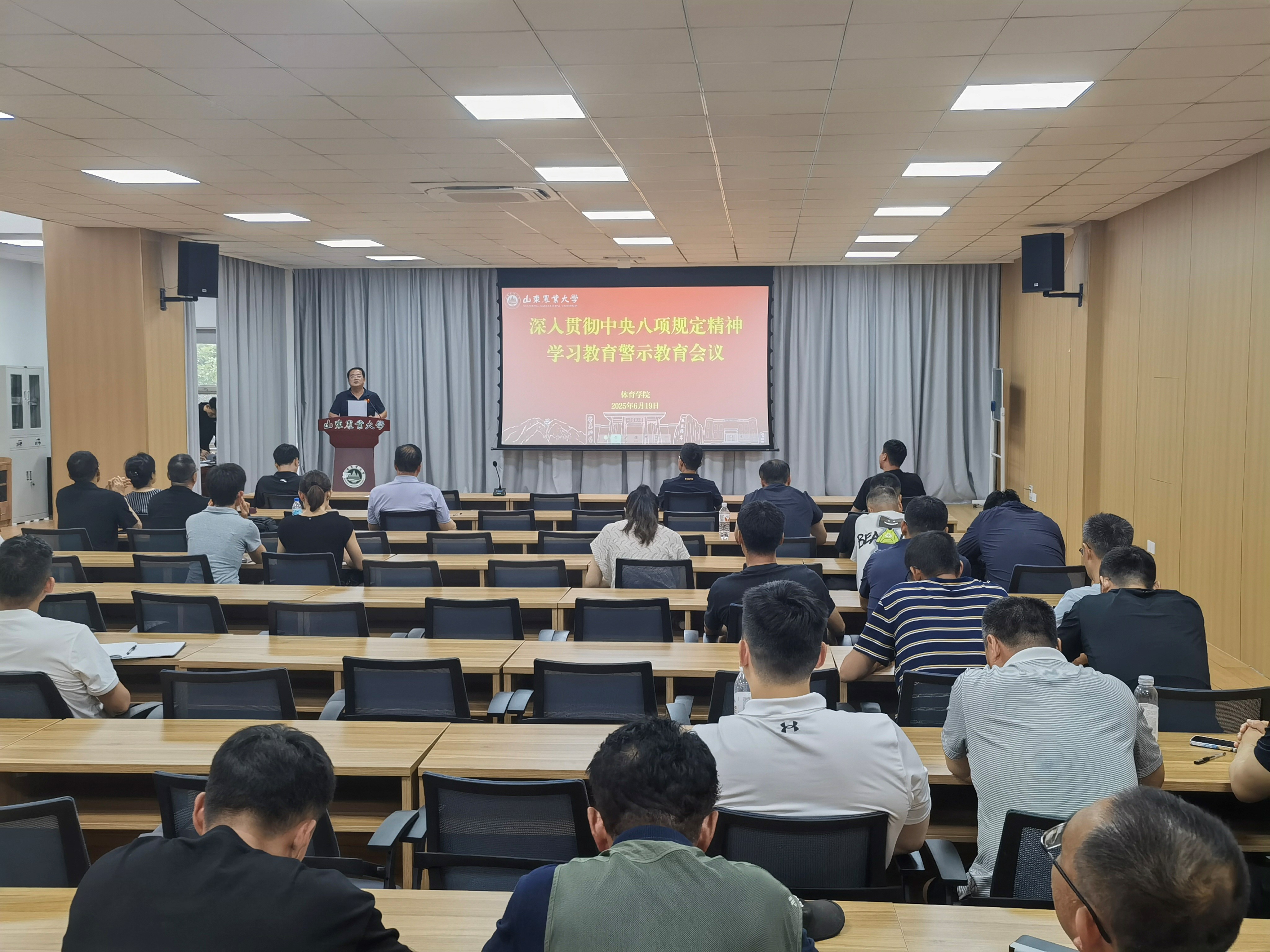 6月20日,学院召开全体教职工会议,开展深入贯彻中央八项规定精神学习教育,进一步严明纪律规矩,强化作风建设。学院党委书记韩同吉传达了上级和学校有关文件精神和通知要求。