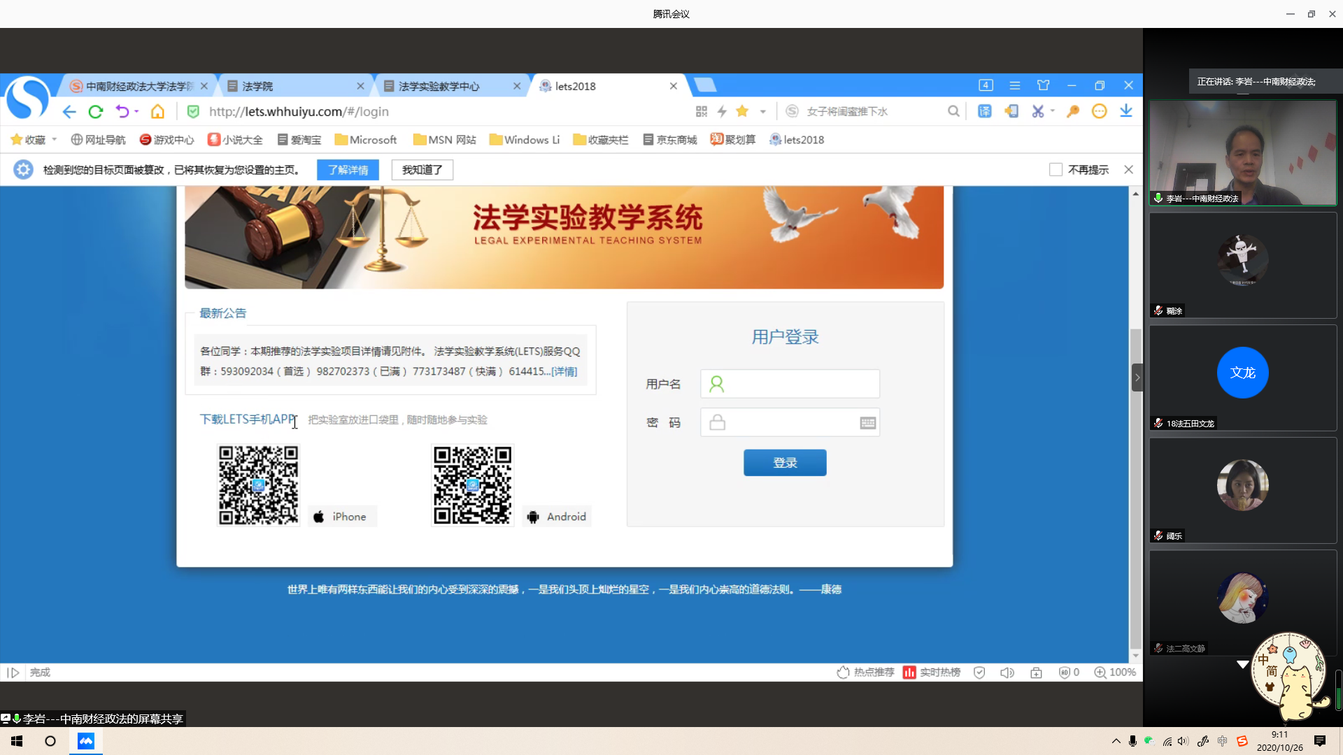 2020年10月26日,公管实验教学中心开展法学实验教学系统(LETS)线上培训。
