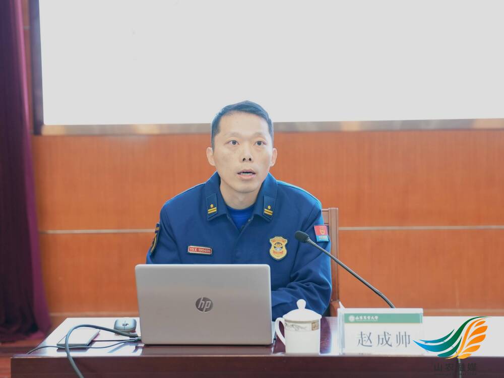 会上,泰安市消防支队赵成帅围绕高等学校消防安全责任及落实作主题报告,着重介绍了法定工作职责与法律责任、消防安全管理与具体落实、重点场所排查与闭环治理、灭火疏散演练与组织实施等方面的内容。